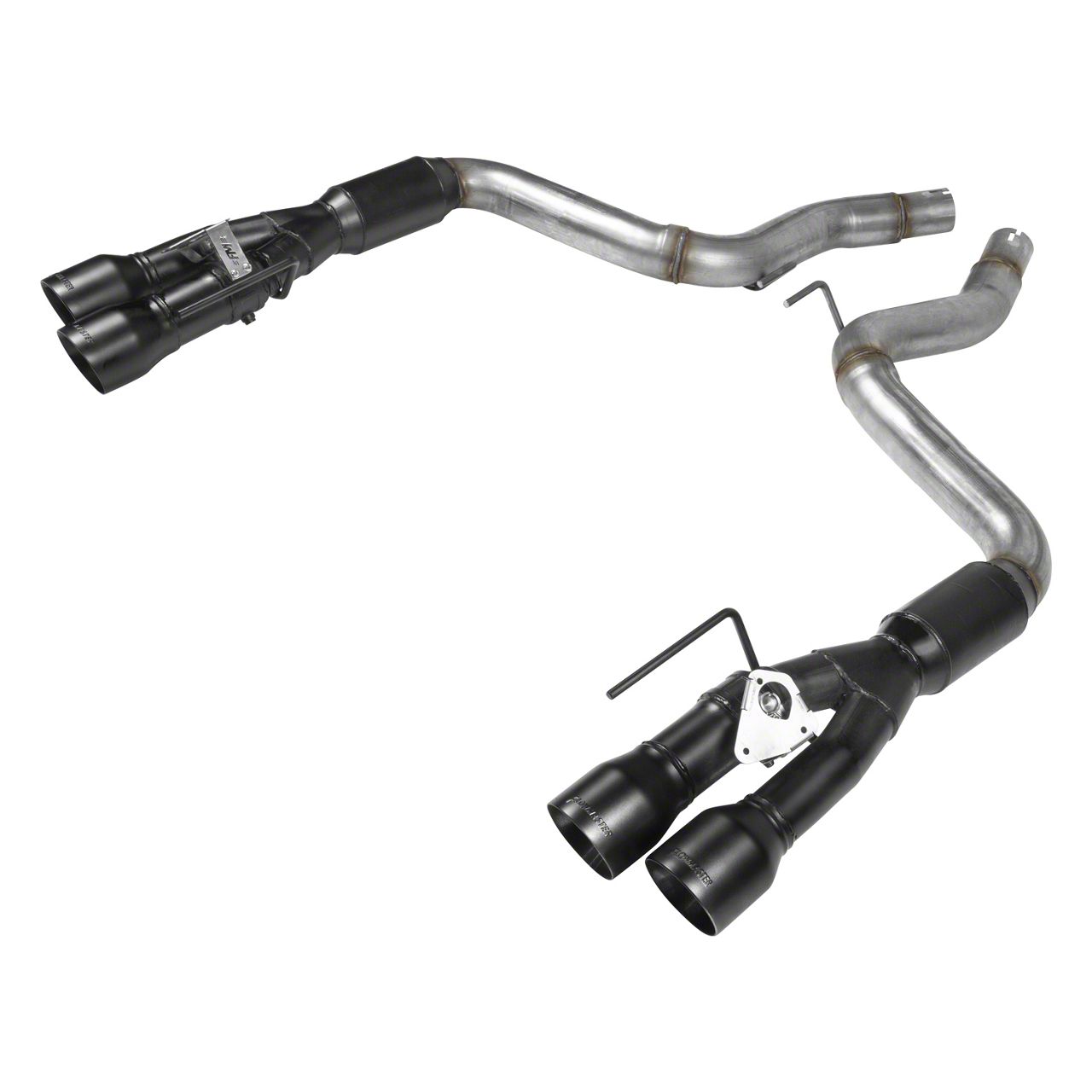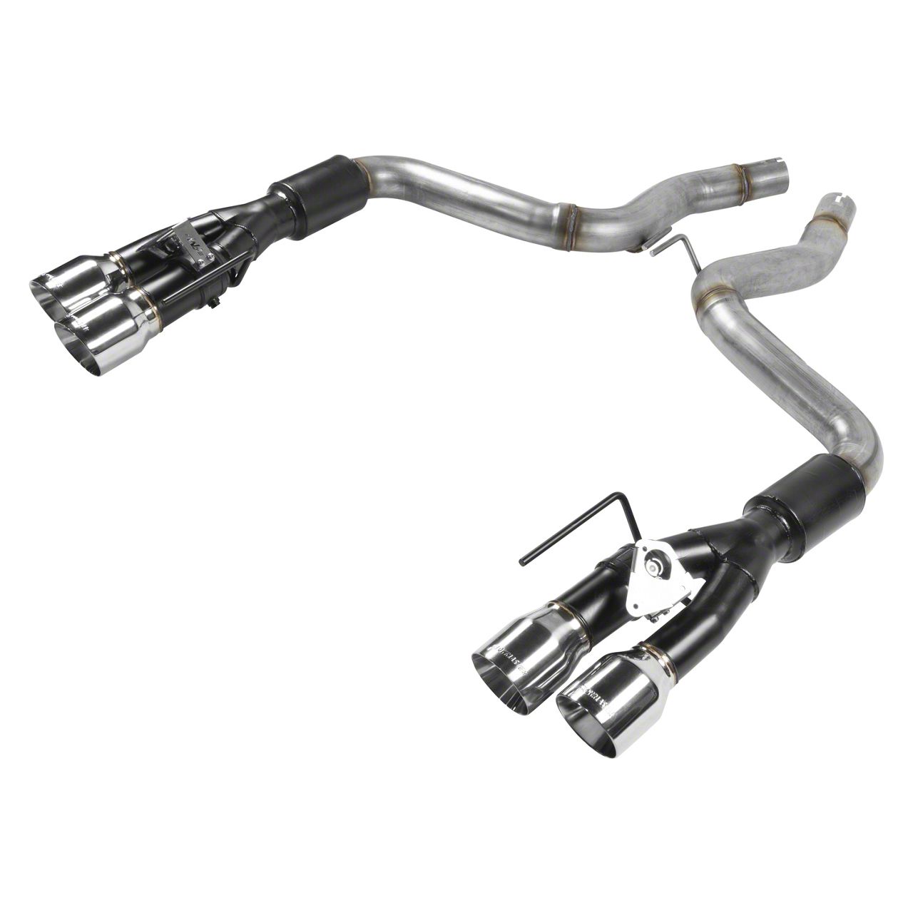 This flowmaster outlaw series axle back exhaust system is designed to fit the 2015 2017 v6 mustangs for both great looks and great sound.